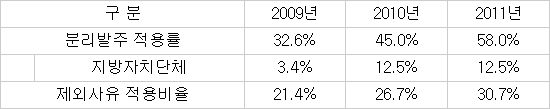 분리발주에 대한 발주기관의 인식이 높아지면서 제도적인 틀 안에서 분리발주 제외사유를 발주기관이 자의적으로 적용한 사례가 증가하고 있다. 이에 대한 제도적 보완이 필요성하다는 것 이번 고시 개정의 배경이다. 또 기관 평가지표에 반영된 국가기관과 공공기관에 비해 낮은 지방자치단체의 분리발주 적용률 제고의 필요성도 제기됐다.