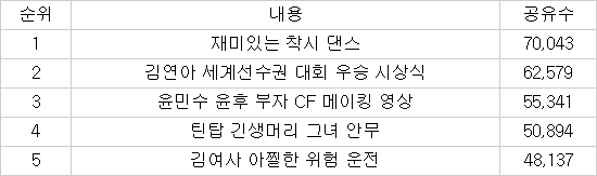 3월 4주차 카카오톡 공유 랭킹 톱5