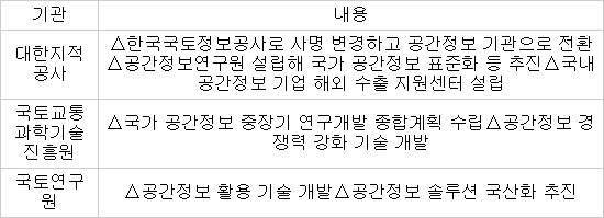 해당 기관은 새롭게 형성되는 공간정보 산업 정책 마련과 연구를 진행, 공공 영역에서 확고한 자리매김을 하겠다는 전략이다.