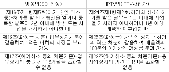 방송법과 IPTV법상 법 위반 제재조치 관련 주요 차이점