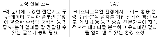 빅데이터 전담 조직과 CAO의 역량 및 역할