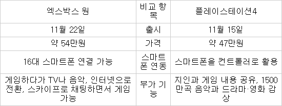 엑스박스 원과 플레이스테이션4 비교