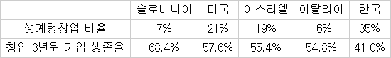 주요국간 청년 창업 현황 비교