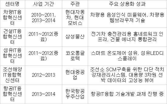 차량IT, 조선IT 등 5개 센터는 그동안 20건 이상 IT융합 R&D 과제를 상용화했고 30여건의 개발 및 상용화를 앞두고 있다.