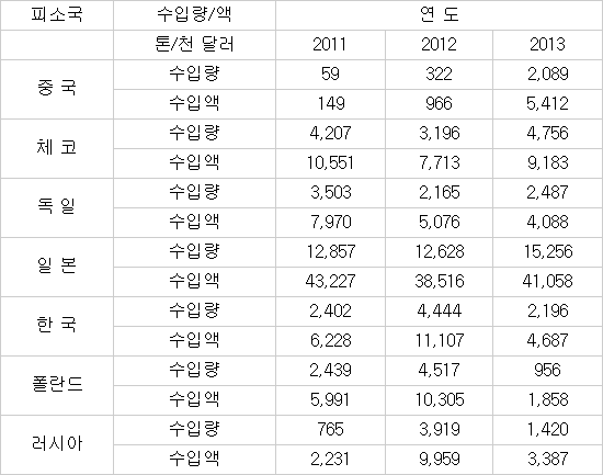 [표]피소국에 대한 미국의 방향성 전기강판 수입현황