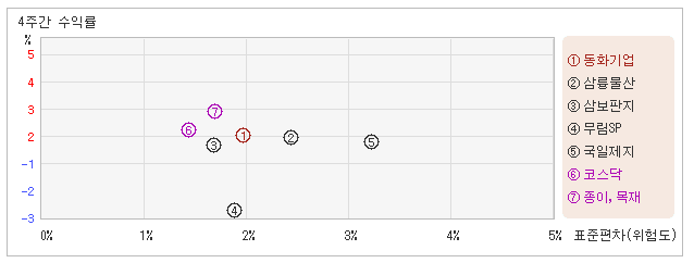 | 동화기업 | 무림SP | 삼륭물산 | 국일제지 | 삼보판지 | |