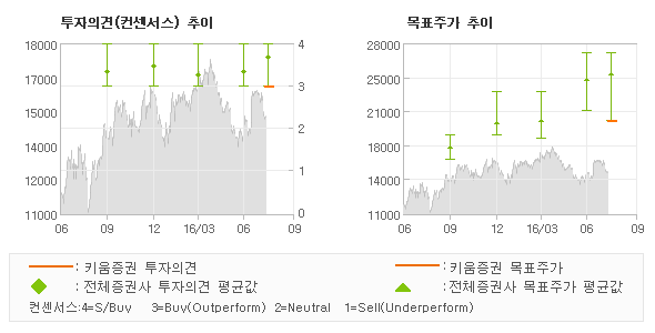 키움증권 김지산, 장민준 애널리스트가 동종목에 대하여 이번에 제시한 '매수(신규)'의견은 키움증권에서는 올해들어 처음 내놓는 매매의견이며 그리고 최근 분기내 발표된 전체 증권사 리포트의 컨센서스와 비교를 해볼 경우에 오늘 발표된 투자의견은 전체의견에 수렴하고 있어, 이번 의견은 시장의 평균적인 기대감이 객관적으로 표현된 것으로 분석되고 있다.