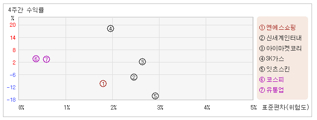 | 엔에스쇼핑 | 1.8% | -11.7% | -6.5 |