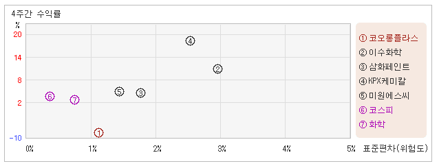 | 코오롱플라스틱 | 1.1% | -9.2% | -8.3 |