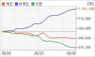 | 기관과 개인은 순매도, 외국인은 순매수(한달누적) 기관이 7일연속 주식을 팔고 있는 반면 외국인은 5일연속 주식을 사고 있다. 4주간을 기준으로 보면 외국인이 초반에 동종목을 순매수한 이후에 기세를 이어가며 1,240,019주를 순매수한 반면, 기관은 매도 관점으로 접근하면서 874,005주를 순매도했고, 개인들도 매도쪽으로 방향을 잡으면서 366,014주를 순매도한 것으로 집계됐다. |