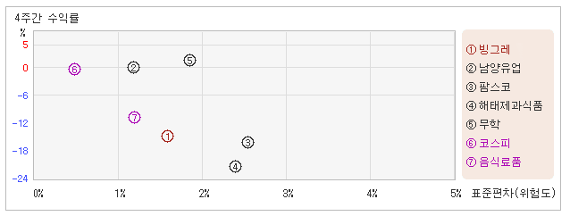 | 빙그레 | 해태제과식품 | 팜스코 | 남양유업 | 무학 | |