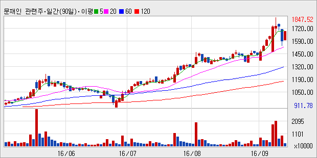 문재인 관련주(지수:1694.23 전일비:▲5.97%)
