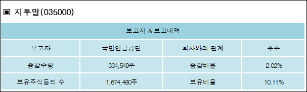 다음은 지투알의 지분 변동 내역과 보유 내역이다.
