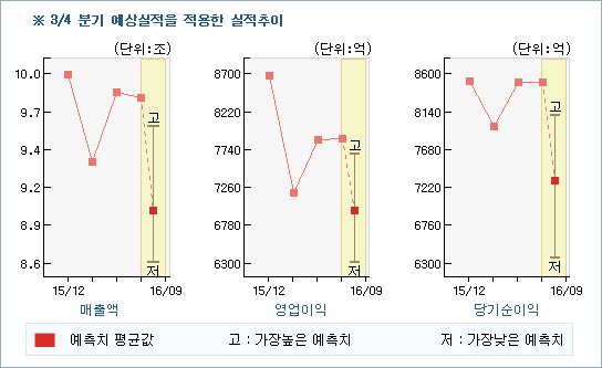 해당기간 동안 순이익 증가세가 무난하게 이어졌던 것으로 보아 동사에 대한 투자의견은 그동안 시장이 침체권이었음에도 불구하고 높아지고 있어 주로 기업의 내부요인, 특히 수익성 증가에 큰 영향을 받는 것으로 해석되고 있다. 한편 증권정보제공 업체인 씽크풀에 따르면 동사에 대한 컨센서스는 '매수'이고 목표주가의 추이를 살펴보면 직전에 한차례 상향조정된 후에 이번에 다시 목표가가 전저점보다 더 높게 하향조정되면서 계속 낮아지는 추세이다.