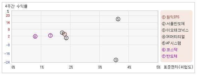 | 위험대비수익률 1.1, 업종지수보다 높아 10일 오전 11시20분 현재 전일대비 2.03% 하락하면서 24,150원을 기록하고 있는 원익IPS는 지난 1개월간 2.11% 상승했다. 동기간 동안 주가움직임의 위험지표인 표준편차는 1.8%를 기록했다. 이는 반도체 업종내에서 주요종목들과 비교해볼 때 원익IPS의 월간 주가수익률과 변동성 모두 적정한 수준을 유지했다는 뜻이다. 최근 1개월을 기준으로 원익IPS의 위험을 고려한 수익률은 1.1을 기록했는데, 변동성과 주가상승률이 모두 적정 수준을 유지하면서 위험대비 수익률도 중간 수준을 나타냈다. 그럼에도 반도체업종의 위험대비수익률 0.5보다는 높았기 때문에 업종대비 성과는 긍정적이라고 할 수 있다. 다음으로 업종과 시장을 비교해보면 원익IPS가 속해 있는 반도체업종은 코스닥지수보다 변동성과 수익률이 모두 높은 모습이다. 다시 말하면 동업종에 탄력이 붙으면서 지수대비 초과상승했다는 의미이다. |