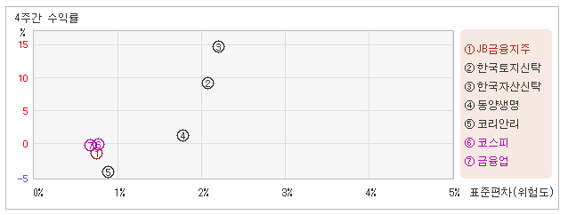 | JB금융지주 | 0.7% | -1.5% | -2.1 |