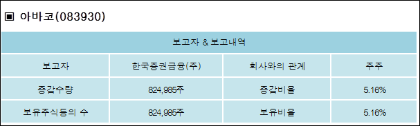 다음은 아바코의 지분 변동 내역과 보유 내역이다.