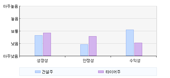 [수급주체 선호도] 최근 20일 동안 수급적인 움직임을 종합했을 때 두 테마에서 기관과 외국인의 순매수 정도가 크지않아 한 쪽을 선호한다고 말하기는 힘든 상황이다. 건설주 테마 내 종목 전체의 시가총액 대비 누적 순매수금액을 구해보면 기관이 총 0.66%를 매수하는 모습을 나타내고 있으나 크지는 않다.