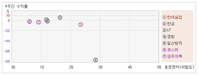| 한세실업 | LF | 경방 | 일신방직 | 한섬 | |