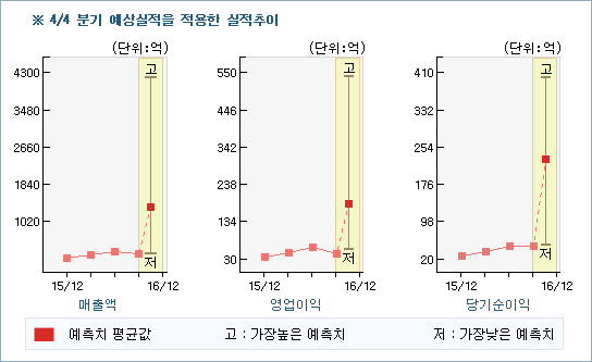 해당기간 동안 순이익 증가세가 견실했던 것으로 보아 동사에 대한 투자의견은 그동안 시장이 침체권이었음에도 불구하고 높아지고 있어 주로 기업의 내부요인, 특히 수익성 증가에 큰 영향을 받는 것으로 해석되고 있다. 한편 증권정보제공 업체인 씽크풀에 따르면 동사에 대한 컨센서스는 '매수'이고 목표주가는 직전에 한차례 하향조정된 후에 이번에 다시 목표가가 상향조정되었는데 이는 전고점보다는 낮은 수준이다.