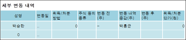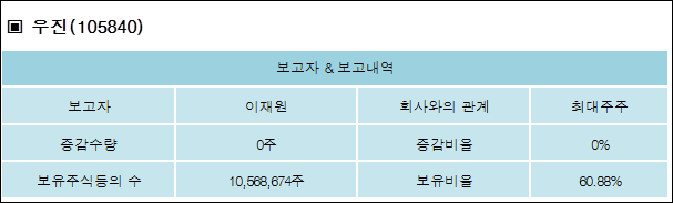 다음은 우진의 지분 변동 내역과 보유 내역이다.