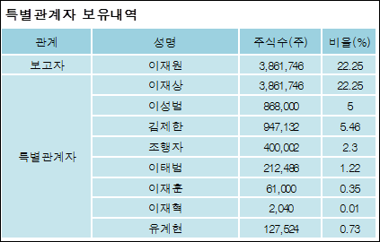 최대주주와 특수관계자의 지분 변동은 주가에 영향을 주는 요인이다. 특히 보유비율을 지속적으로 늘리거나 줄일 경우, 해당종목 투자시 유의할 필요가 있다.