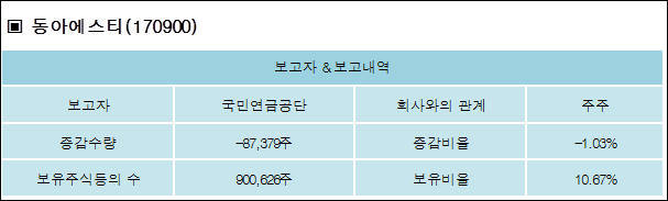 다음은 동아에스티의 지분 변동 내역과 보유 내역이다.