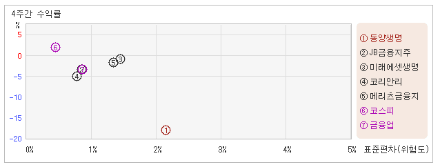 | 동양생명 | 2.1% | -18.1% | -8.5 |