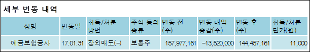 다음은 우리은행의 지분 변동 내역과 보유 내역이다.