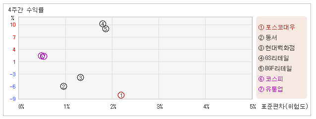 | 포스코대우 | BGF리테일 | 동서 | 현대백화점 | GS리테일 | |