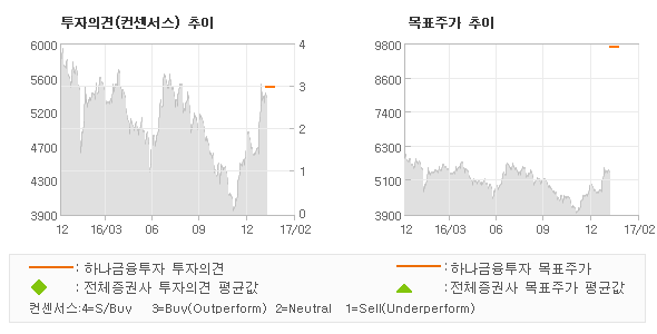 하나금융투자 김두현, 배송이 애널리스트가 동종목에 대하여 이번에 제시한 '매수'의견은 하나금융투자에서는 올해들어 처음 내놓는 매매의견이며 그리고 최근 분기내 발표된 전체 증권사 리포트의 컨센서스와 비교를 해볼 경우에 오늘 발표된 투자의견은 대체적으로 평균치에 해당하는 수준으로, 이번 의견은 동종목에 대한 전체적인 흐름에서 크게 벗어나지 않은 것으로 분석되고 있다.