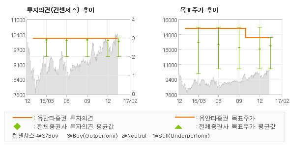 유안타증권 박진형 애널리스트가 동종목에 대하여 이번에 제시한 '매수(유지)'의견은 유안타증권의 직전 매매의견과 동일한 것이고 전년도말의 매매의견을 기준으로 볼때도 역시 '매수'의견이 계속 유지되고 있는 상태이다. 그리고 최근 분기내 발표된 전체 증권사 리포트의 컨센서스와 비교를 해볼 경우에 오늘 발표된 투자의견은 전체의견에 수렴하고 있어, 이번 의견은 시장의 평균적인 기대감이 객관적으로 표현된 것으로 분석되고 있다.