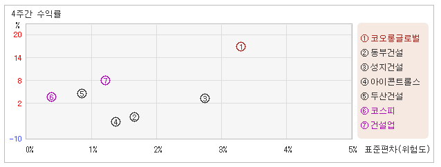 | 동부건설 | 1.6% | -4.1% | -2.5 |