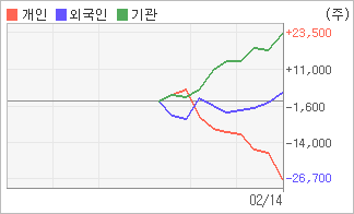 | 외국인/기관 순매수, 개인은 순매도(한달누적) 2월27일부터 전일까지 기관이 3거래일 연속 순매수했다. 4주간을 기준으로 보면 외국인이 3,243주를 순매수했고, 기관도 23,413주를 순매수했다. 반면 개인들은 매도쪽으로 방향을 잡으면서 26,656주를 순매도한 것으로 나타났다. |