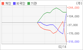 | 외국인/기관 순매수, 개인은 순매도(한달누적) 2월27일부터 전일까지 외국인이 3거래일 연속 순매수를 보였다. 4주간을 기준으로 보면 외국인이 145,513주를 순매수했고, 기관도 171,819주를 순매수했다. 반면 개인들은 매도쪽으로 방향을 잡으면서 317,332주를 순매도한 것으로 나타났다. |