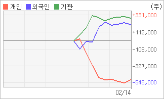| 외국인/기관 순매수, 개인은 순매도(한달누적) 기관이 9일연속 순매수를 보이고 있는 반면에 외국인은 4일연속 순매도를 보이고 있다. 4주간을 기준으로 보면 외국인이 211,804주를 순매수했고, 기관도 293,559주를 순매수했다. 반면 개인들은 매도쪽으로 방향을 잡으면서 505,363주를 순매도한 것으로 나타났다. |