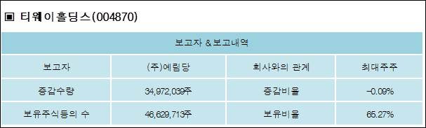 다음은 티웨이홀딩스의 지분 변동 내역과 보유 내역이다.