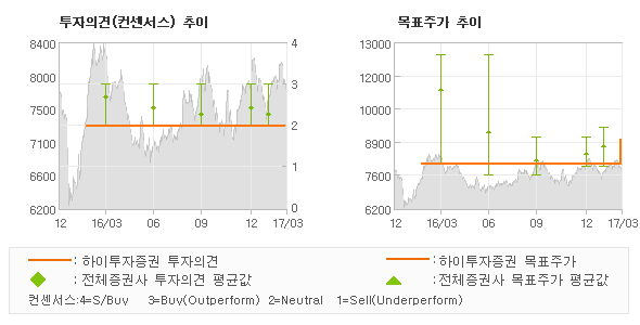 | 한편 증권정보제공 업체인 씽크풀에 따르면 동사에 대한 컨센서스는 '트레이딩매수'이고 목표주가는 최근 2회연속 목표가가 높아지가 이번에는 직전보다 소폭 낮은 수준으로 하향반전되는 추세이다. |