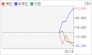 | 기관과 개인은 순매도, 외국인은 순매수(한달누적) 전일까지 기관이 3일 연속, 외국인이 5일 연속 각각 동종목을 순매수 했다. 4주간을 기준으로 보면 외국인이 73,542주를 순매수한 반면, 기관은 매도 관점으로 접근하면서 31,432주를 순매도했고, 개인들도 매도쪽으로 방향을 잡으면서 42,110주를 순매도한 것으로 집계됐다. |