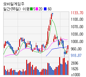 [수급주체 선호도] 최근 20일 동안 수급적인 움직임을 종합했을 때 외국인의 모바일게임주 테마에 대한 선호가 큰 것으로 나타났다. 반면에 기관에 대해서는 특정 테마를 선호한다고 판단하기 어려운 상황이다. 모바일게임주 테마 내 종목 전체의 시가총액 대비 누적 순매수금액을 구해보면 외국인은 총 2.39%에 이르는 큰 금액을 매수하고 있다.