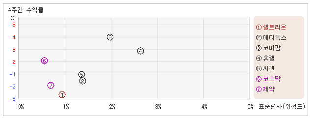 | 셀트리온 | 0.9% | -4.5% | -4.9 |