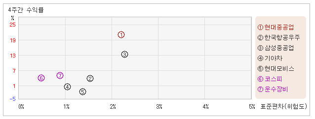 | 현대중공업 | 한국항공우주 | 현대모비스 | 기아차 | 삼성중공업 | |