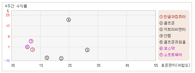 | 한글과컴퓨터 | 0.7% | -2.2% | -3.0 |
