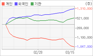 | 외국인/기관 순매수, 개인은 순매도(한달누적) 전일까지 기관이 4일 연속, 외국인이 10일 연속 각각 동종목을 순매수 했다. 4주간을 기준으로 보면 외국인이 초반에 동종목을 순매수한 이후에 기세를 이어가며 1,309,117주를 순매수했고, 기관도 방향성있는 매매를 하면서 537,036주를 순매수했다. 반면 개인들은 매도쪽으로 방향을 잡으면서 1,846,153주를 순매도한 것으로 나타났다. |