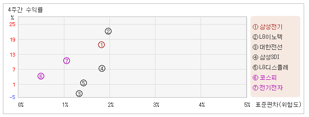 | 삼성전기 | LG디스플레이 | 대한전선 | LG이노텍 | 삼성SDI | |