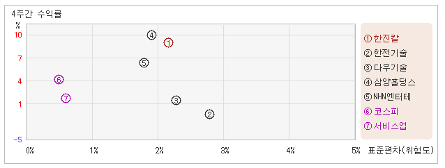 | 한전기술 | 2.8% | -1.6% | -0.5 |
