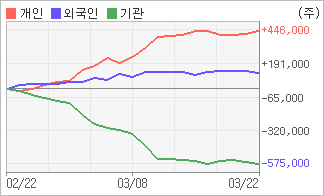| 외국인/개인 순매수, 기관은 순매도(한달누적) 전일 외국인이 14,422주를 사들인 반면 기관은 9,057주를 팔았다. 4주간을 기준으로 보면 외국인이 매수 우위를 유지하면서 121,898주를 순매수했고, 개인들도 순매수량을 늘리며 445,866주를 순매수했다. 하지만 기관은 매도 관점으로 접근하면서 567,764주를 순매도했다. |