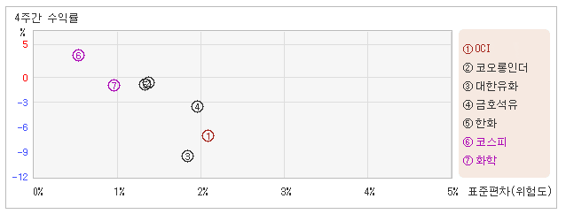 | 대한유화 | 1.8% | -12.1% | -6.6 |