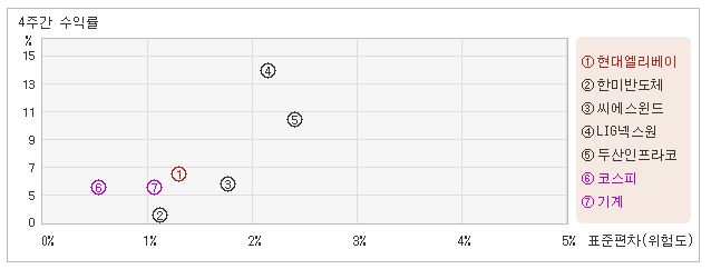 | 현대엘리베이 | 씨에스윈드 | LIG넥스원 | 두산인프라코어 | 한미반도체 | |