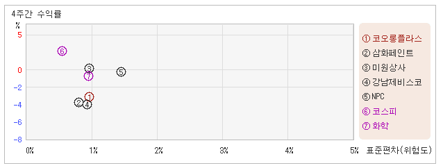 | 삼화페인트 | 0.8% | -4.8% | -5.9 |